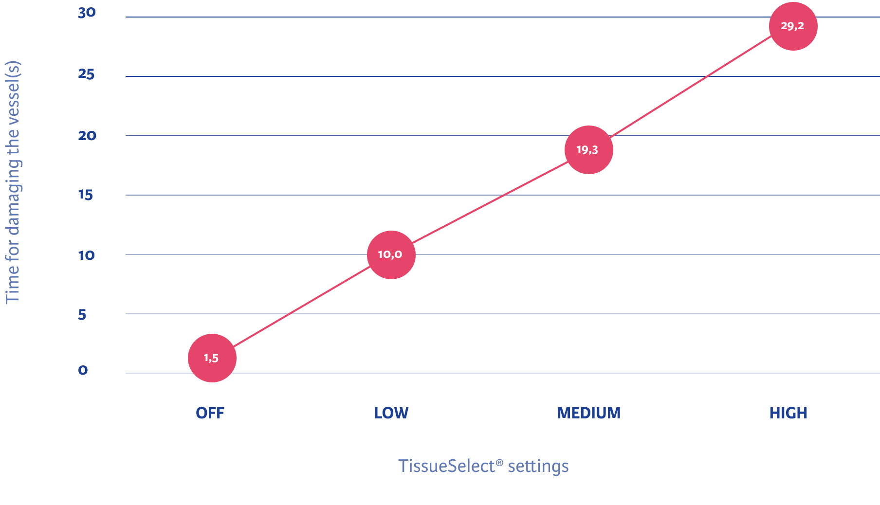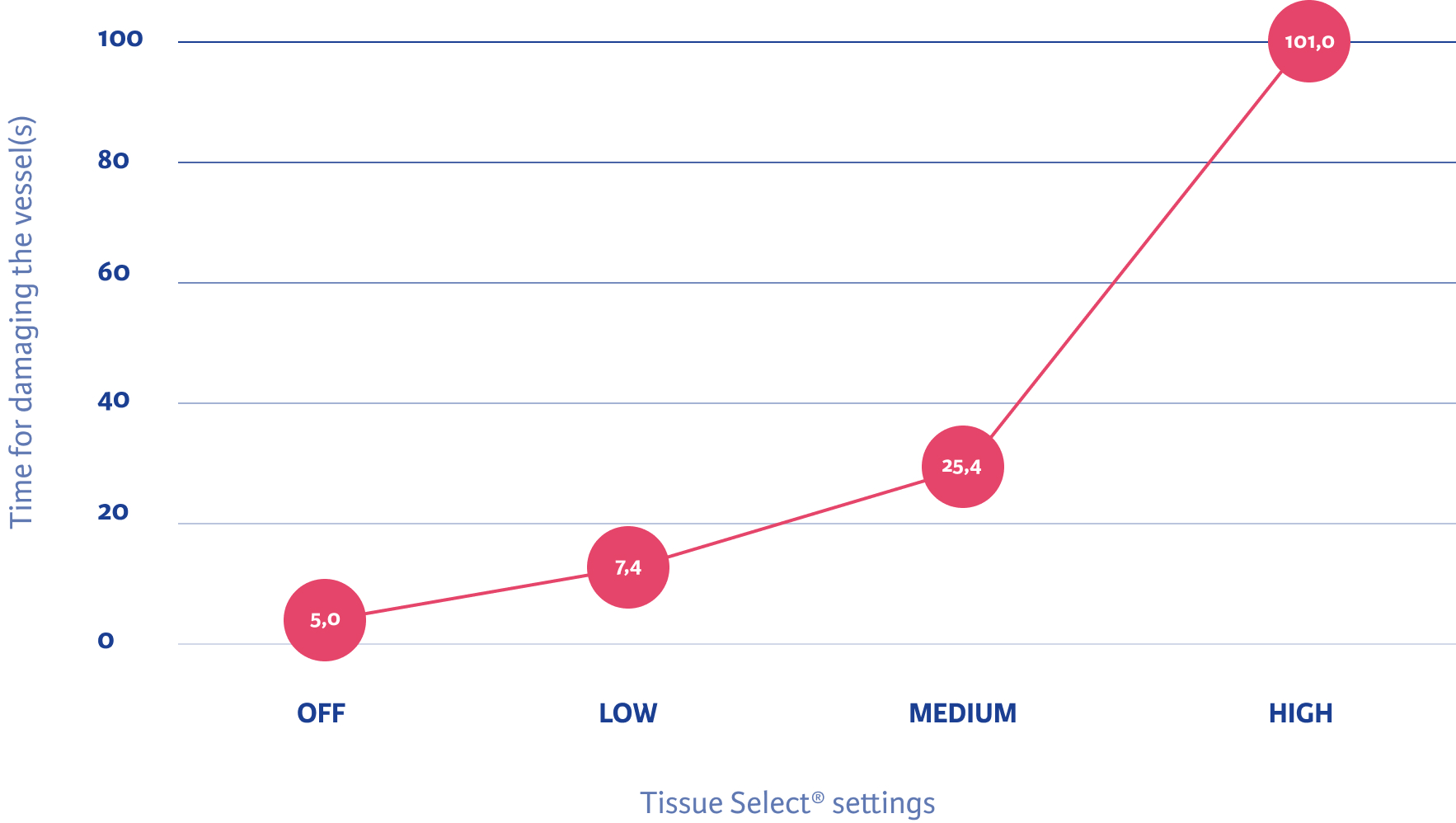 A HIGH Tissue Select® setting provided 20 times more time before damaging the vessel wall.